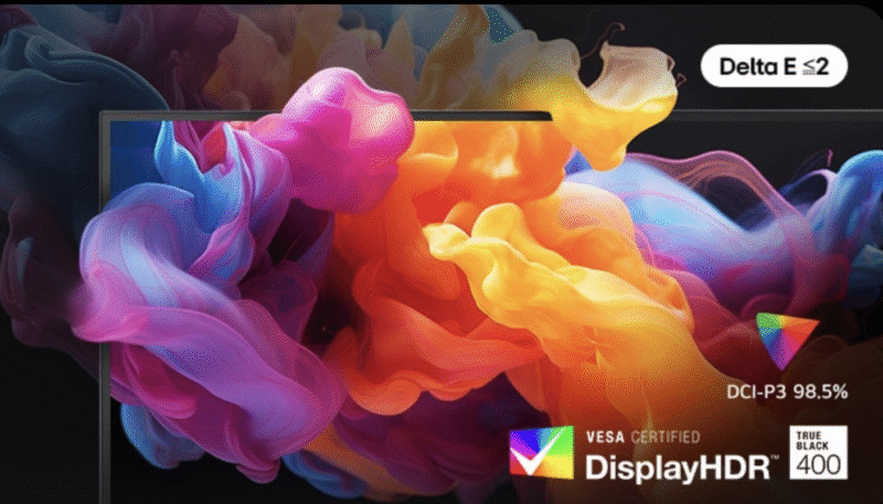 OLED กับ HDR True Black 400 และสี DCI‑P3 98.5% สีสันสมจริง ดำสนิท — สวยในทุกเฟรม