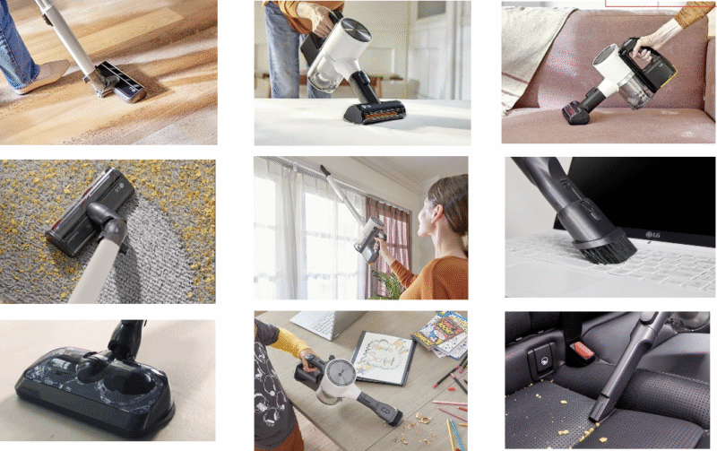 •มีหัวดูดหลายแบบ: Multi‑Surface Nozzle, Slim Nozzle, Mini Nozzle, Pet Nozzle, Crevice/Combination tool และหัวม็อบ